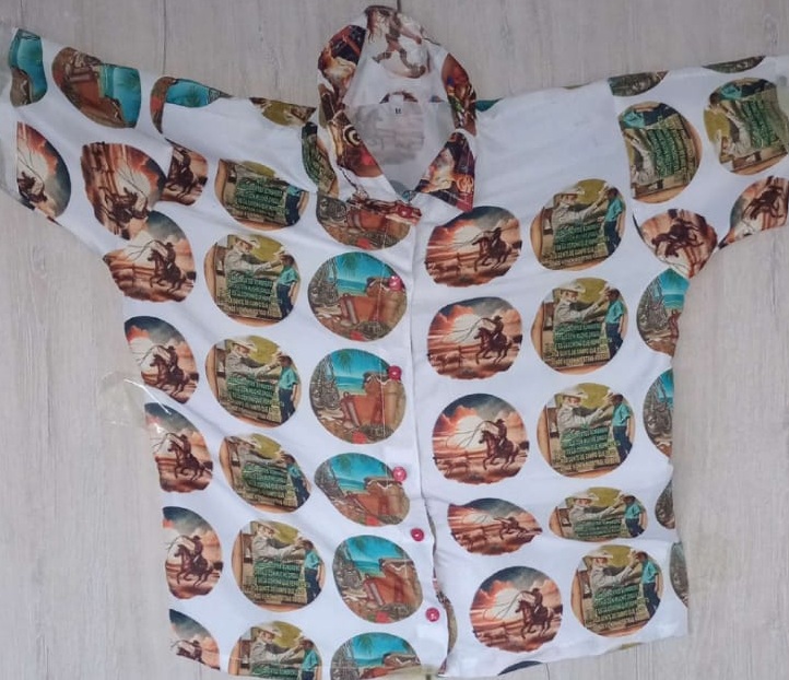 Elaborado en tela algodon, }ccon diseños con la Inteligencaia Artificial.
